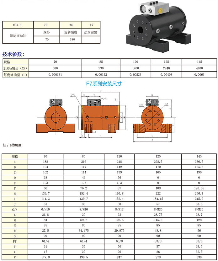 F7系列螺旋擺動油缸為底腳式安裝,帶防暴管平衡閥,結(jié)構(gòu)緊湊,外觀合適。安裝方便,普遍應(yīng)用于各種工程機(jī)械及翻轉(zhuǎn)機(jī)構(gòu),與進(jìn)品F7系列1:1互換使用。